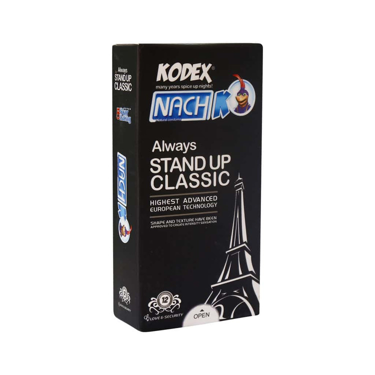 کاندوم کدکس مدل استند آپ کلاسیک شفاف بوده و برای کسانی که شفافیت و داشتن حس طبیعی برایشان مهم بوده، بسیار مناسب است. این محصول از لاتکس با کیفیت همراه با مواد روان کننده و کاملا چرب تهیه شده است.