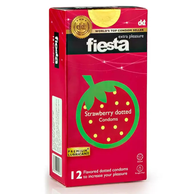 کاندوم خاردار توت فرنگی فیستا یک رابطه جنسی فوق العاده و سرشار از لذت را به شما هدیه می دهد . این کاندوم خاردار با دارا بودن ماده های روان کننده درد را در زمان رابطه جنسی کمتر می کند و لذت زیادتری را به وجود می آورد . توصیه کارشناسان ما برای زوجینی که به دنبال یک تجربه ی جنسی تازه و مطمئن هستند استفاده از کاندوم خاردار توت فرنگی فیستا است، که با نام کاندوم خاردار توت فرنگی فیستا ، Fiesta Strawberry Dotted Condoms 12 pcs هم شناخته می شود .